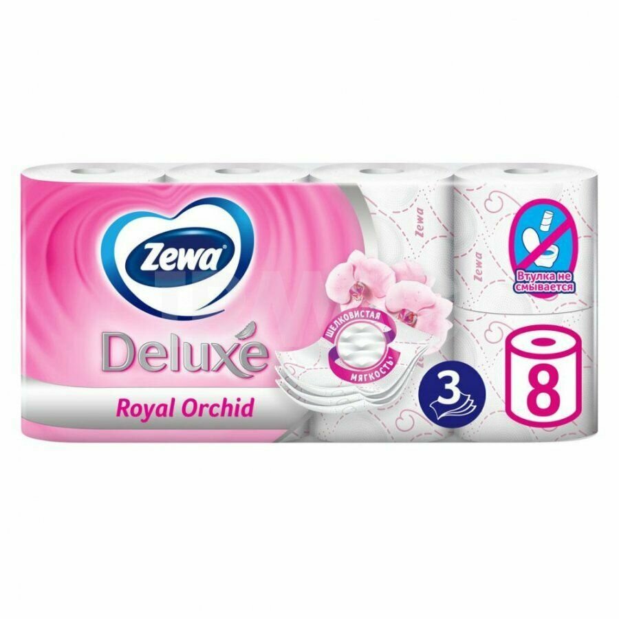 Бумага туалетная Zewa Deluxe Орхидея 3 слоя 8 рулонов