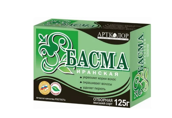 Иранская басма - натуральное, растительное средство для окрашивания волос в тёмные тона(от светло-каштанового до чёрного). Изготавливается из высших сортов кустарника Indigofera Tinctoria (или Argentea), выращиваемого на лучших плантациях Ирана. Высокое качество продукта подтверждено аттестатом «РОСТЕСТ». Благодаря содержанию биологически активных веществ продукт оздоравливает волосы.