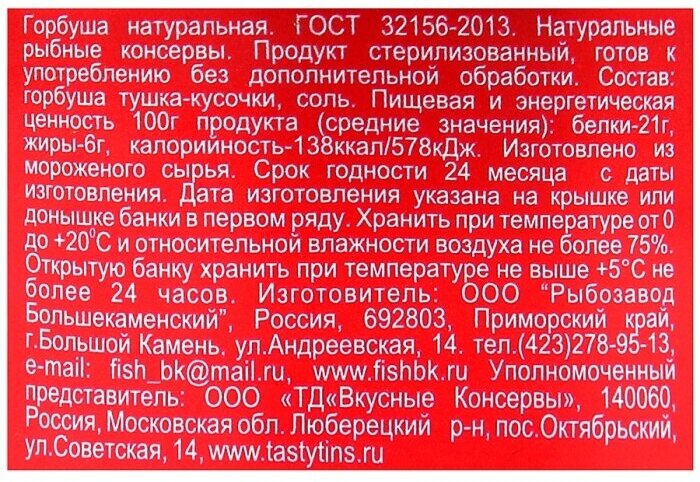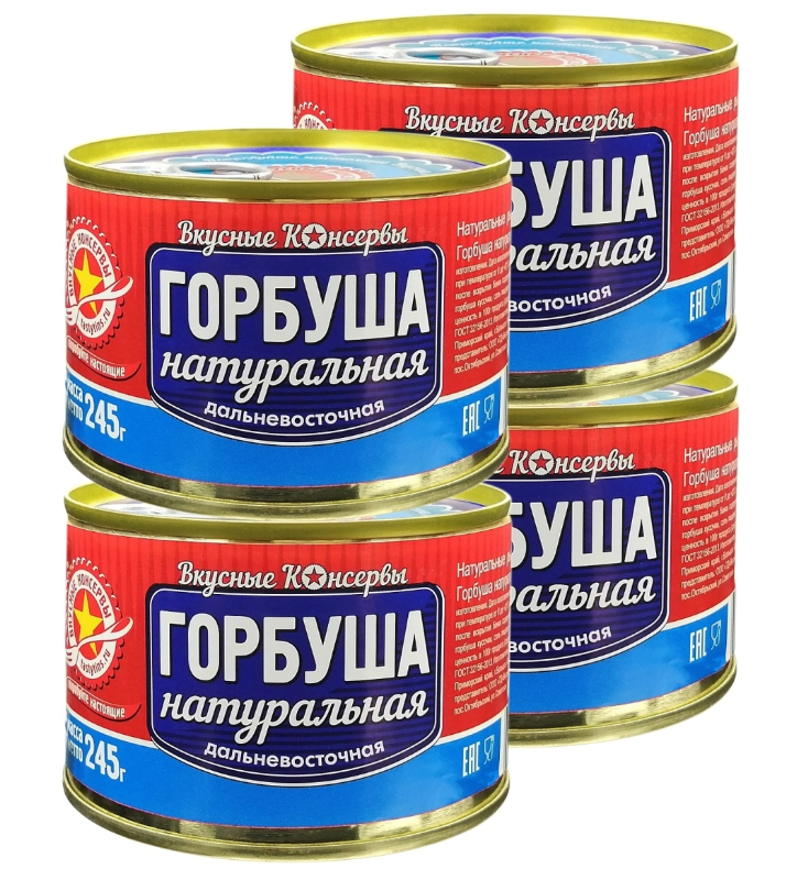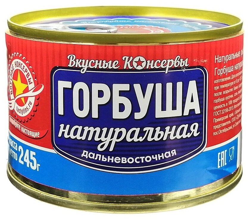 Горбуша натуральная. Производится в России на Дальнем Востоке. Изготовлена из отборной рыбы в сезон вылова. Сочное розовое мясо натуральной горбуши отличается нежностью, мягкостью и деликатным вкусом. Не содержит искусственных добавок и консервантов. Богато жирными кислотами омега-3, витаминами группы В и Е. Рекомендуется использовать для приготовления супов, а также салатов и других закусок. Рыбные консервы разнообразят ваш рацион и прекрасно подойдут к некоторым гарнирам.