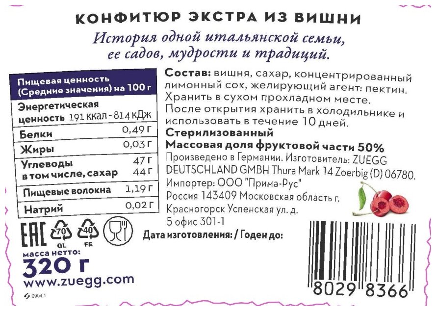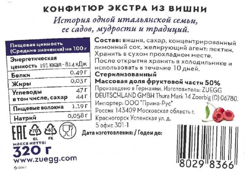 Сервис сравнения цен СкидкаГИД предлагает сравнить цены на товар «Конфитюр ZUEGG вишня 320 г»