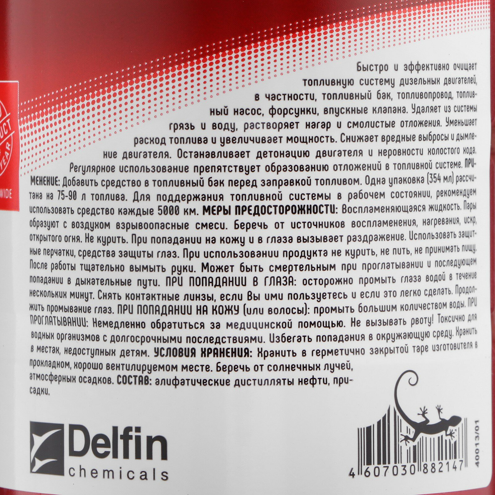 Предназначен для эффективного очищения топливной системы дизельных двигателей, в частности топливного бака, топливопровода, топливного насоса, форсунок, впускных клапанов. Удаляет из системы грязь и воду, растворяет нагар и смолянистые отложения в топливной системе. Способствует уменьшению расхода топлива и увеличению мощности двигателя. Останавливает детонацию двигателя и устраняет неровности холостого хода. Снижает вредные выбросы и дымление двигателя. Помогает избежать дорогостоящего ремонта или замены дизельных инжекторов.ПРИМЕНЕНИЕ: Добавить содержимое банки в топливный бак перед заправкой топливом в пропорции: 1 банка (354 мл) на 75-90 литров топлива. Повторное применение дает дополнительный эффект. Рекомендуется использовать каждые 5000 км. Гарантийный срок хранения - 2 года.