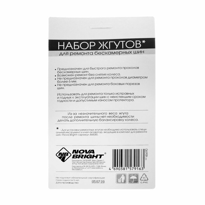Набор жгутов для ремонта бескамерных шин Nova Bright 10 шт 46690