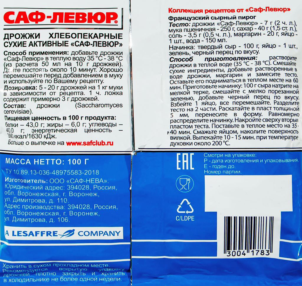 Сервис сравнения цен СкидкаГИД предлагает сравнить цены на товар «Дрожжи «Саф-Лефюр» хлебопекарные сухие 100 г»