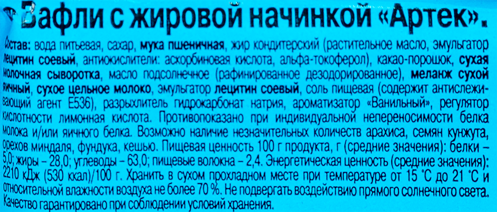| Тип товара | Вафли |