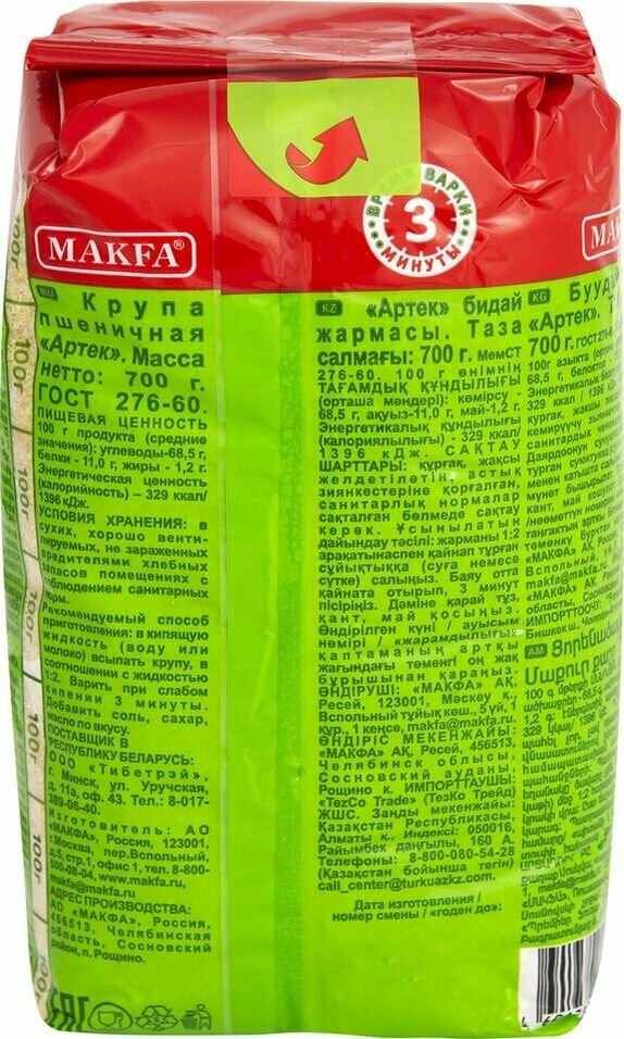 Пшеничная крупа MAKFA "Артек" делается исключительно из твердых сортов пшеницы, что делает приготовленные из нее каши не только вкусными, но и полезными.