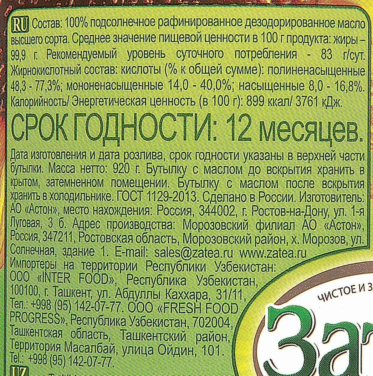 | Состав | подсолнечное рафинированное дезодорированное масло высшего сорта. |