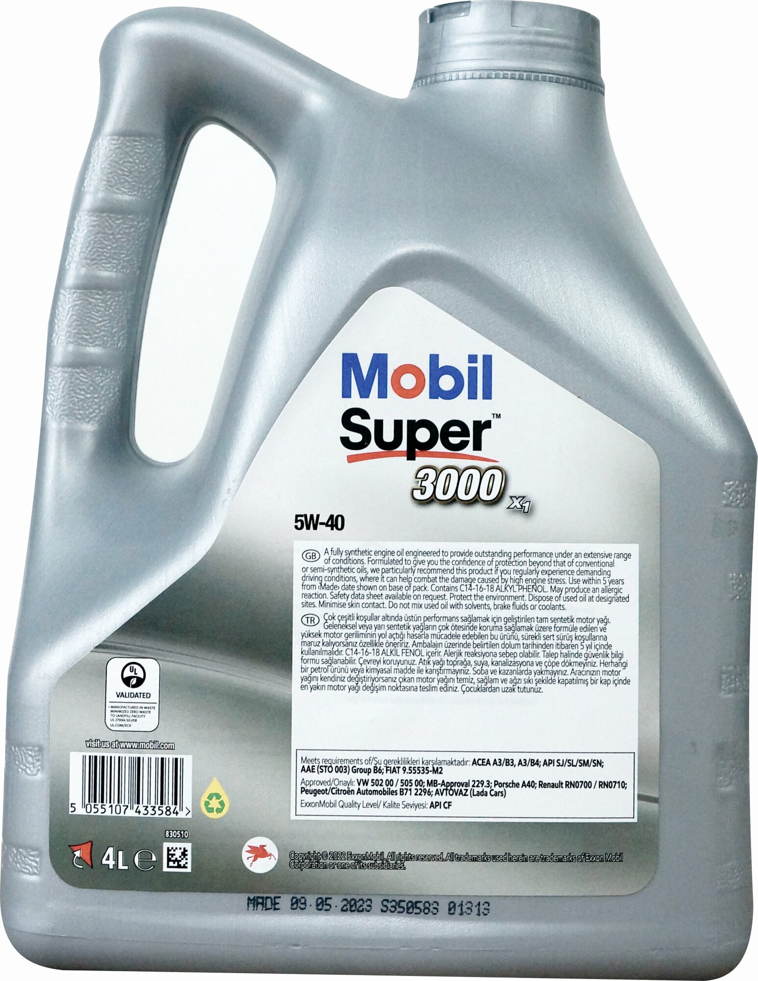 Моторное масло Mobil Super 3000 X1 5W-40 произведено в Турции, на заводе "Mobil Oil Turk". Моторное масло Мобил супер 3000 Х1 соответствует всем стандартам масла Mobil. Также моторное масло Мобил проверено испытательной лабораторией на качество и соответствие стандартам Mobil. Оригинальное синтетическое моторное масло Mobil Super 3000 X1 5W-40 обеспечивает длительный срок службы двигателей в автомобилях различных типов и годов выпуска, а также повышенный уровень их защиты в широком диапазоне температур. Смазка хорошо защищает от износа, обеспечивает хорошую чистоту двигателя и защиту от образований отложений и шлама. Масло автомобильное подходит для бензиновых и дизельных двигателей без сажевых фильтров, а также двигателей с турбонаддувом и прямым впрыском топлива. Автомасла Мобил Супер синтетика 5W40 предоставляют дополнительный уровень защиты по сравнению с минеральными и полусинтетическими маслами. Смазочный материал применяется при регулярно возникающих сложных условиях вождения, чтобы предотвратить повреждения от интенсивных и частых нагрузок. Масло машинное рекомендовано ведущими производителями как при движении по автострадам, так и в городских условиях с частыми остановками. Классификация по API: SJ, SL, SM, SN. Классификация по ACEA: A3/B3, А3/В4.
