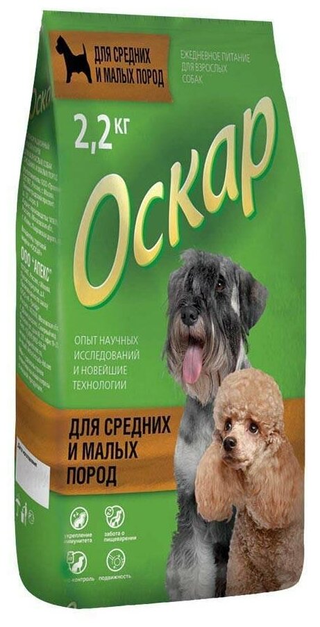 Сбалансированный Сухой корм «Оскар» » 2,2 кг для взрослых собак средних и мелких пород с нормальной физической активностью. ОСКАР для взрослых собак средних и мелких пород — особый сбалансированный рацион, который удовлетворяет потребности собак с нормальной физической активностью.