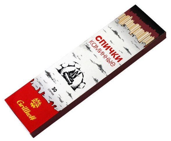Спички "Каминные". Длина спички 21 см. 30 шт. в коробке. Основное отличие является их длина и толщина, что обеспечивает длительное горение, безопасный и удобный розжиг.