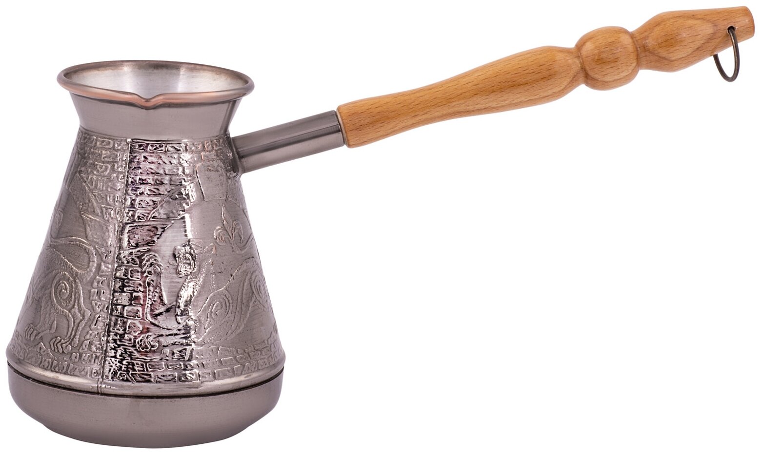 Турки-кофеварки медные, 0,5 л являются наиболее неприхотливыми и долговечными. У любителей кофе особой популярностью пользуются турки из меди, исторически пришедшие из стран Востока. Медь имеет равномерную теплопроводность и кофе не пригорает к стенкам турки. Качественная турка имеет широкое дно и узкое горлышко, внутреннее покрытие из пищевого олова, которое предохраняет медь от окисления. Рисунок на медной турке может отличаться от заявленного.