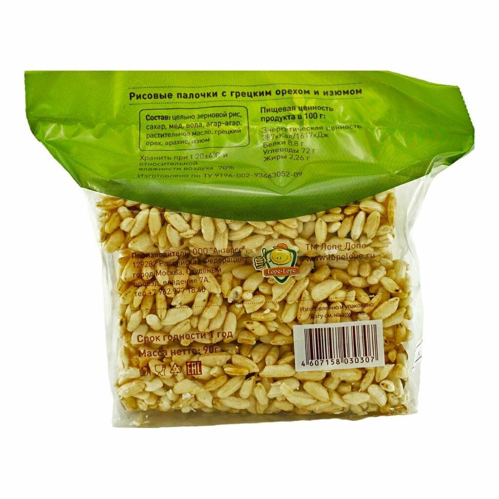 Палочки Рисовые Lope-Lope с грецким орехом и изюмом 90 г