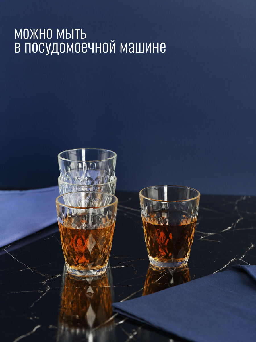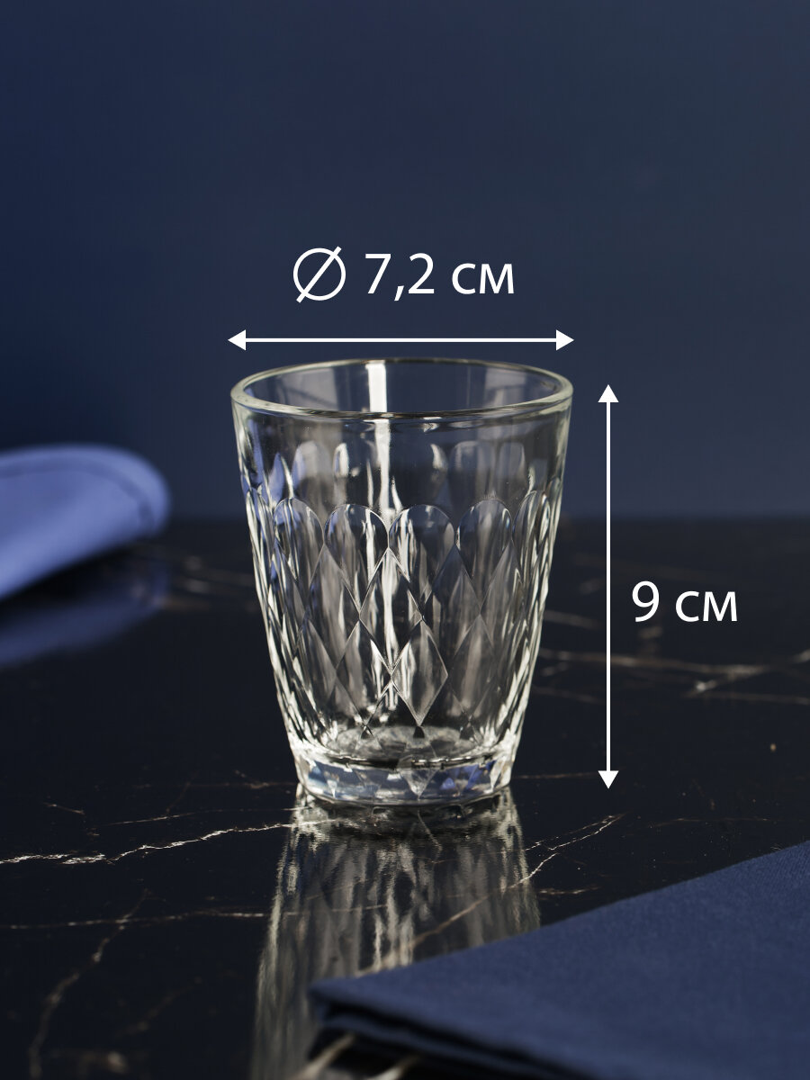 Стакан изготовлен из высококачественного прочного стекла. Благодаря высокому качеству и уникальному дизайну, он будет очень стильно смотреться на столе.