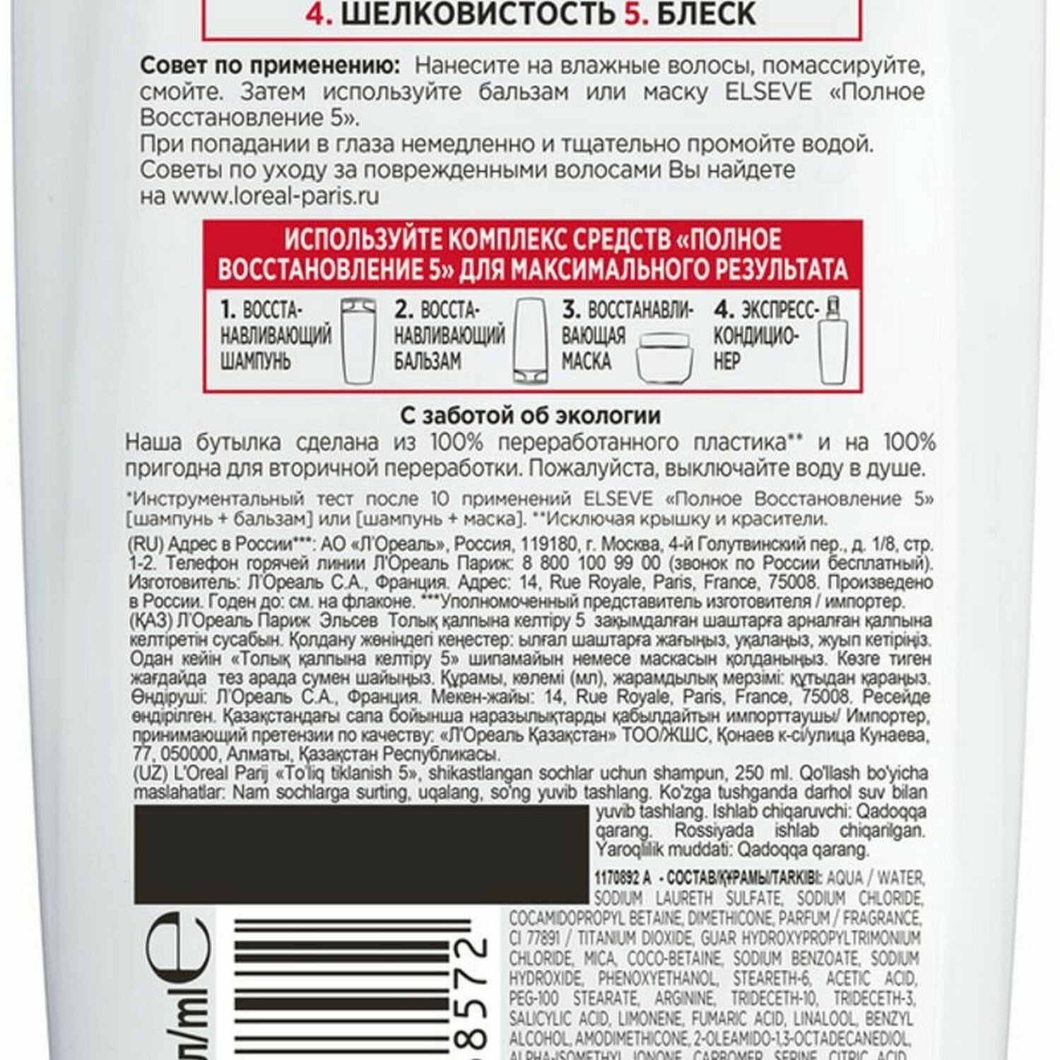 Шампунь для волос L'Oreal Paris Elseve Восстановление 5 250 мл