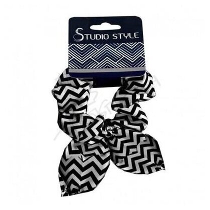 Резинка- бантик с полосатым черно белым принтом.Прекрасно дополнят прическу и зафиксируют волосы в хвост или пучок.Изготовлена из полиэстера и резины.