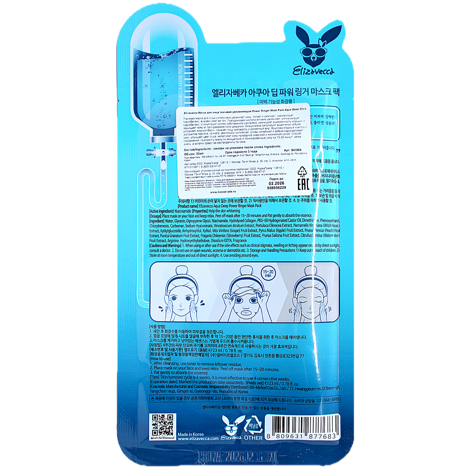 Маска для лица Elizavecca Aqua Deep Power Ringer Mask Pack тканевая 23 мл