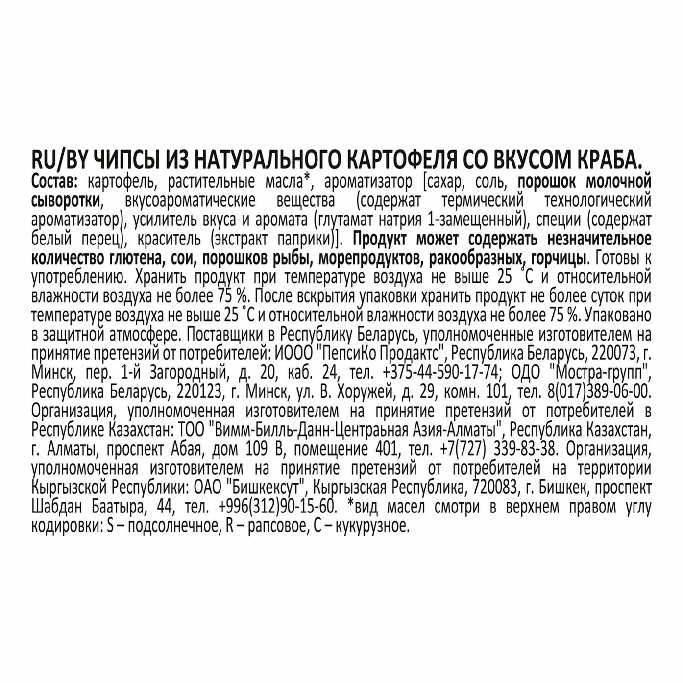Чипсы Lay's со вкусом нежного камчатского краба приготовлены специально для ценителей Lay's. Чипсы Лейз - отличное сочетание вкуса краба и золотистых картофельных чипсов. Лейз подарят вихрь удовольствия!