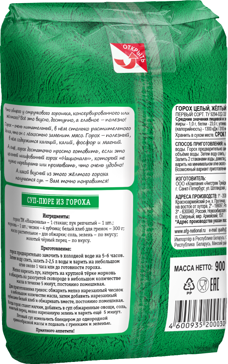 Горох жёлтый «Националь» целый 900 г
