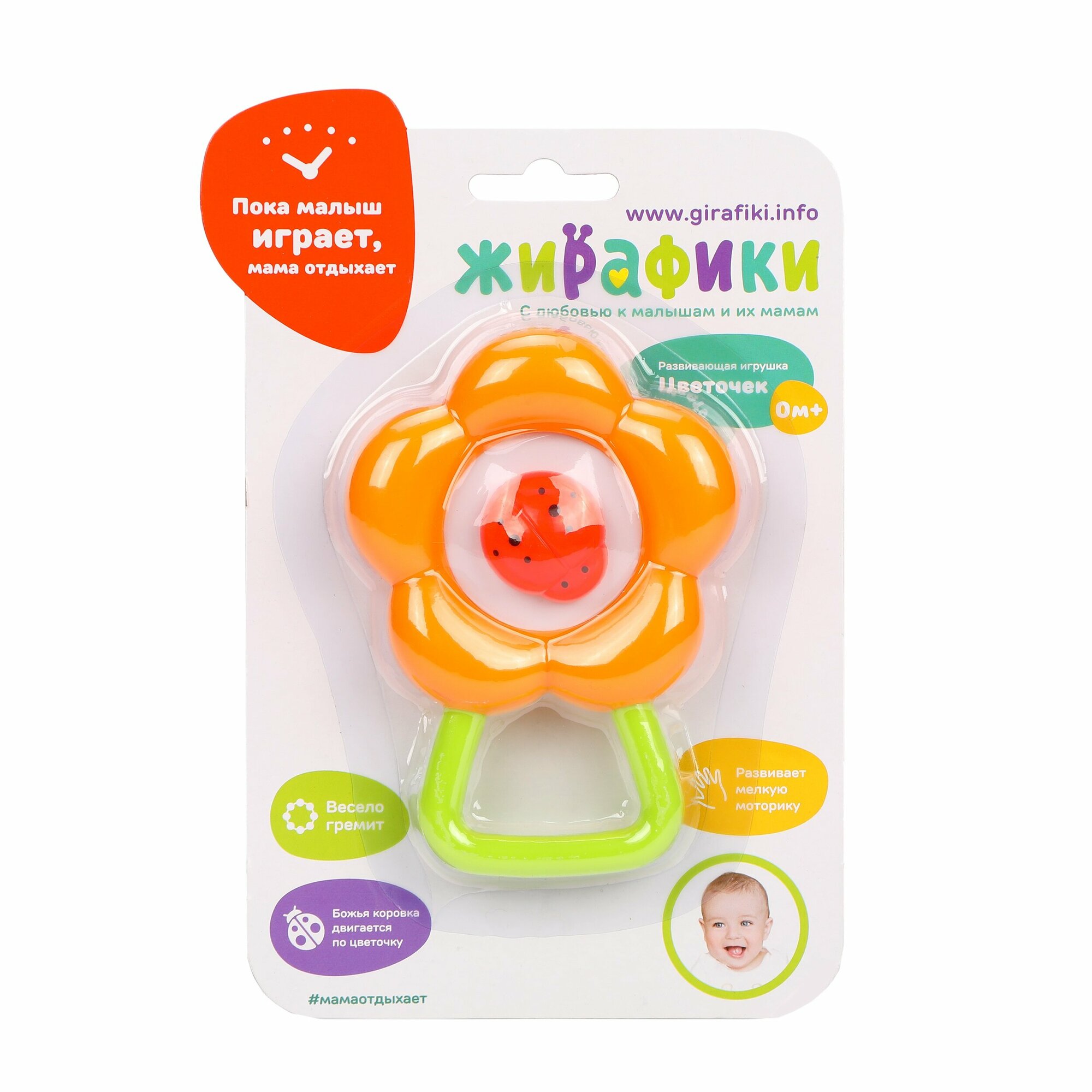 Игрушка-погремушка «Жирафики» Цветочек с рождения 1 шт