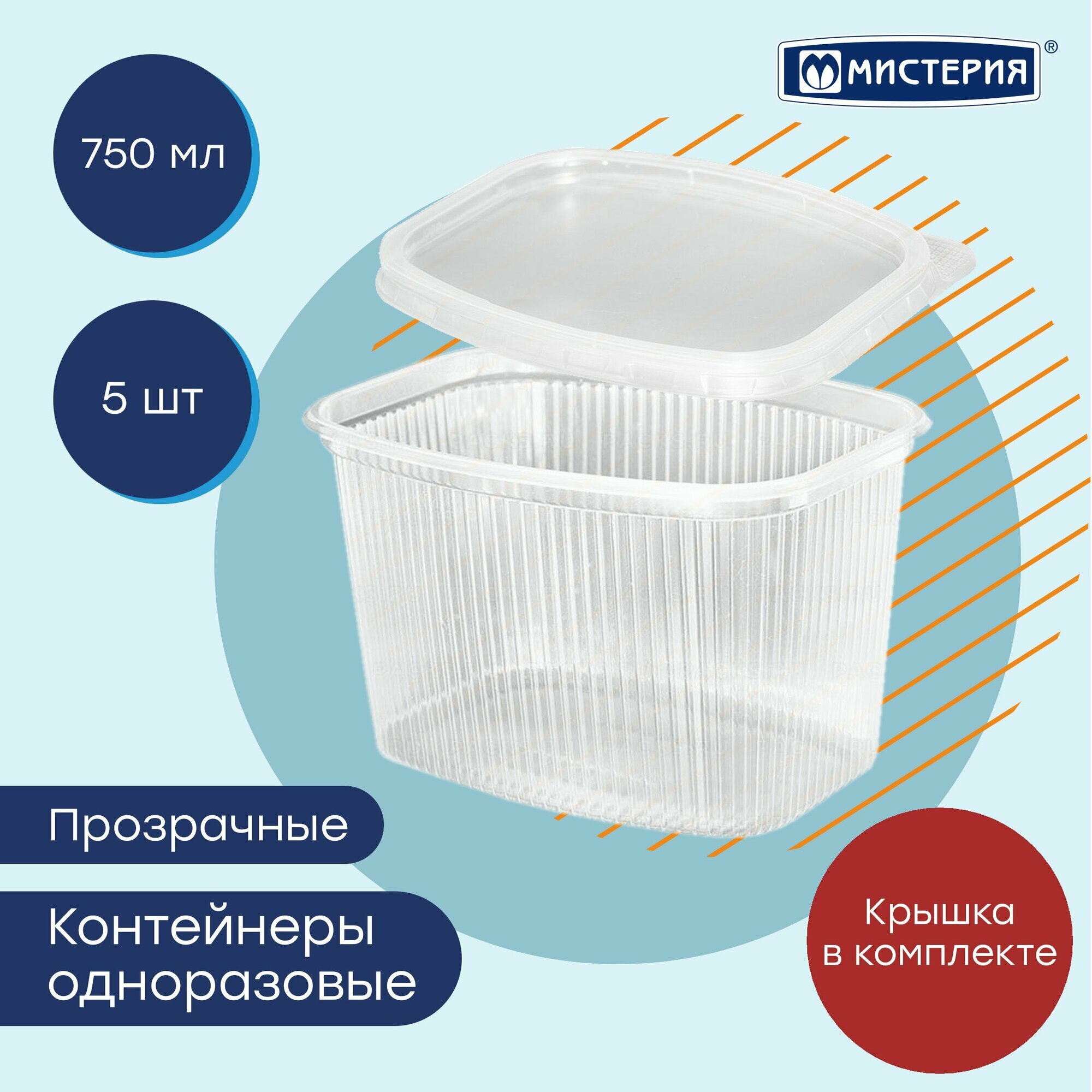 Контейнер «Мистерия» одноразовый с крышкой, 5х750 мл, полупрозрачный. Подходит для использования в холодильнике и морозильной камере. Можно разогревать пищу в контейнере в микроволновой печи.
