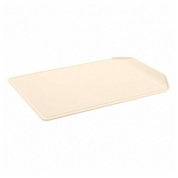 Специальный приподнятый край с маленькими бортиками делает добавление нарезанных ингредиентов в готовящееся блюдо аккуратным и удобным. Также этот край можно использовать как ручку. Доска Flex изготовлена из безопасного пластика, который не тупит ножи во время резки. Поверхность доски матовая и нескользящая. По периметру доски – небольшой желобок, в который собирается лишний сок, получающийся при подготовке продуктов. На нижней части доски – четыре ножки и специальная рельефная поверхность, благодаря которой доска не скользит даже на мокром столе.