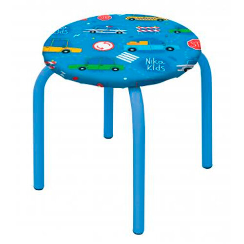 Табурет для детей в возрасте от 3 до 7 лет. Материал: сиденье – водоотталкивающая ткань каркас – металл, пластмасса. Цвет: синий. Преимущества: лёгкий табурет с мягким сиденьем пластиковые заглушки на опорах яркий печатный рисунок на стуле.