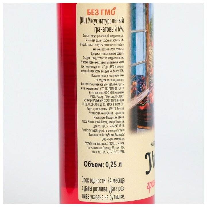 Сервис сравнения цен СкидкаГИД предлагает сравнить цены на товар «Уксус гранатовый «СП Мирный» натуральный 6% 250 мл»