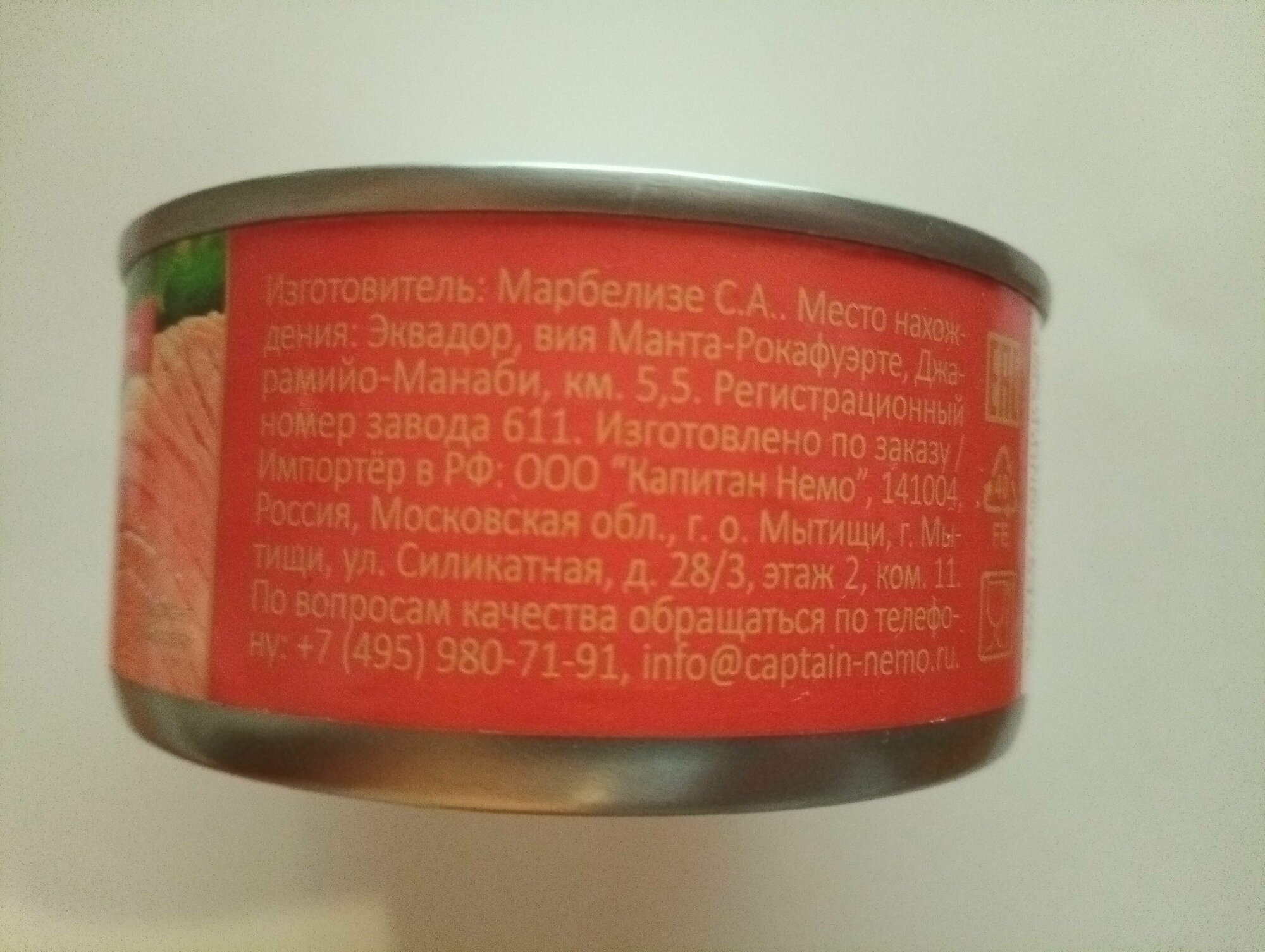 | Состав | тунец полосатый (филе), вода, соль |