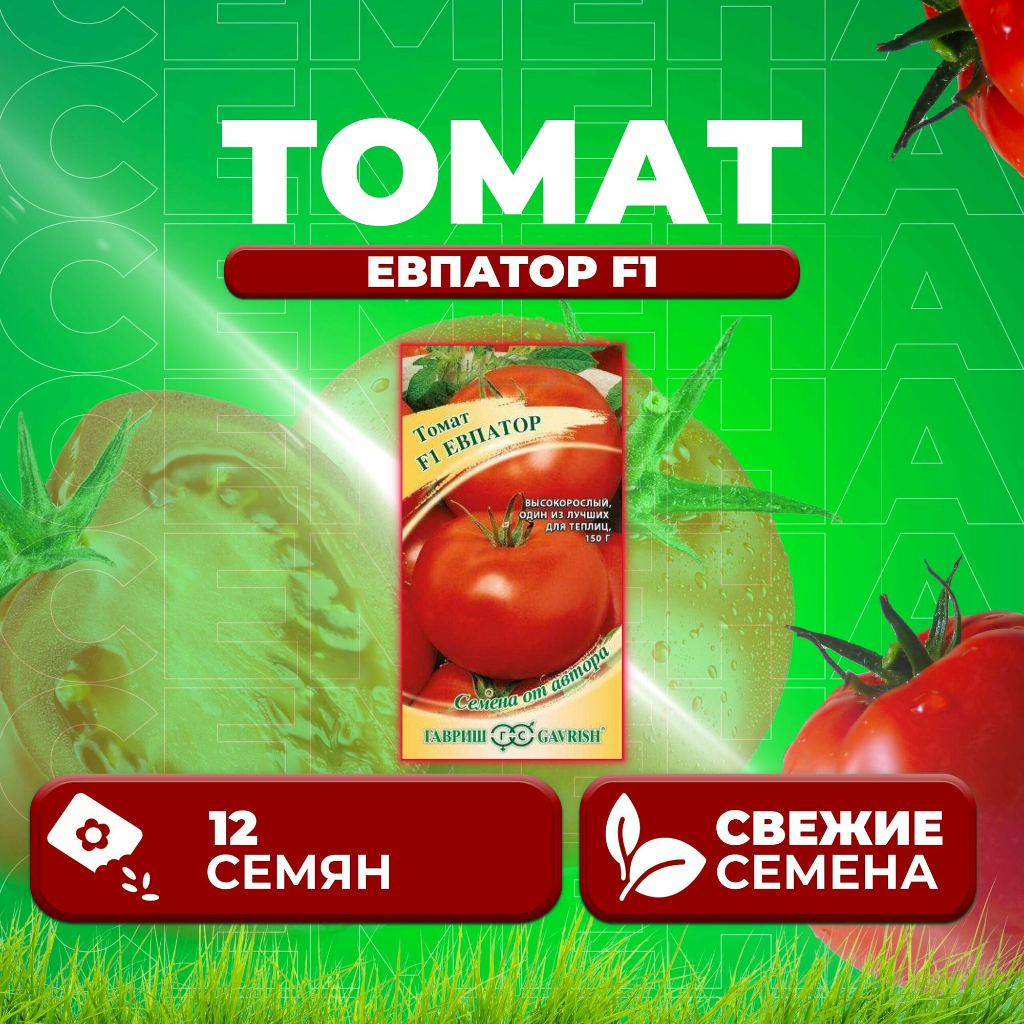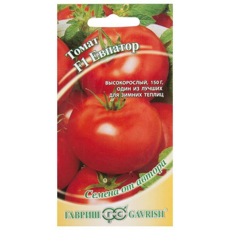 Томат F1 Евпатор дает высокую урожайность даже в холодном климате с коротким летом. В теплице он самый урожайный из всех посаженных вариантов. Его можно выращивать и в открытом грунте с подвязкой к кольям, но это не даст гибриду раскрыть весь свой потенциал. Избегает поражения фитофторой, не болеет кладоспориозом, долго хранится. Растение высокорослое. По срокам созревания — среднеранний (106-110 дней). Плоды плоскоокруглые 130-150 г, одинаковые, очень удобны для консервирования, отличного вкуса. Кожица плотная, но не грубая, томаты один к одному, хорошо укладываются банку, не растрескиваются. Растения хорошо завязывают плоды при ранних сроках посадки. Урожайность одного куста 4,5-5,5 кг. Семена после уборки сохраняют всхожесть в течение 10 лет при оптимальных условиях хранения. Рекомендуется увеличить норму высева по истечение срока годности.