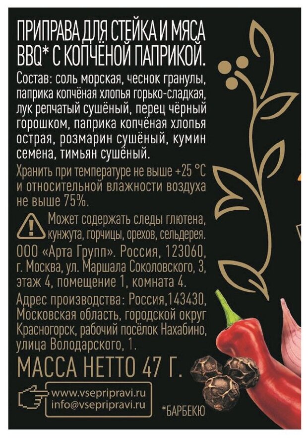 Новая приправа для барбекю приятно удивит ценителей мяса на гриле. Пикантные нотки кумина органично вплетаются в пряный вкус тимьяна с лёгкой горчинкой копчёной паприки. Сочетание небольшой остринки с выдержанной пряностью никого не оставит равнодушным.