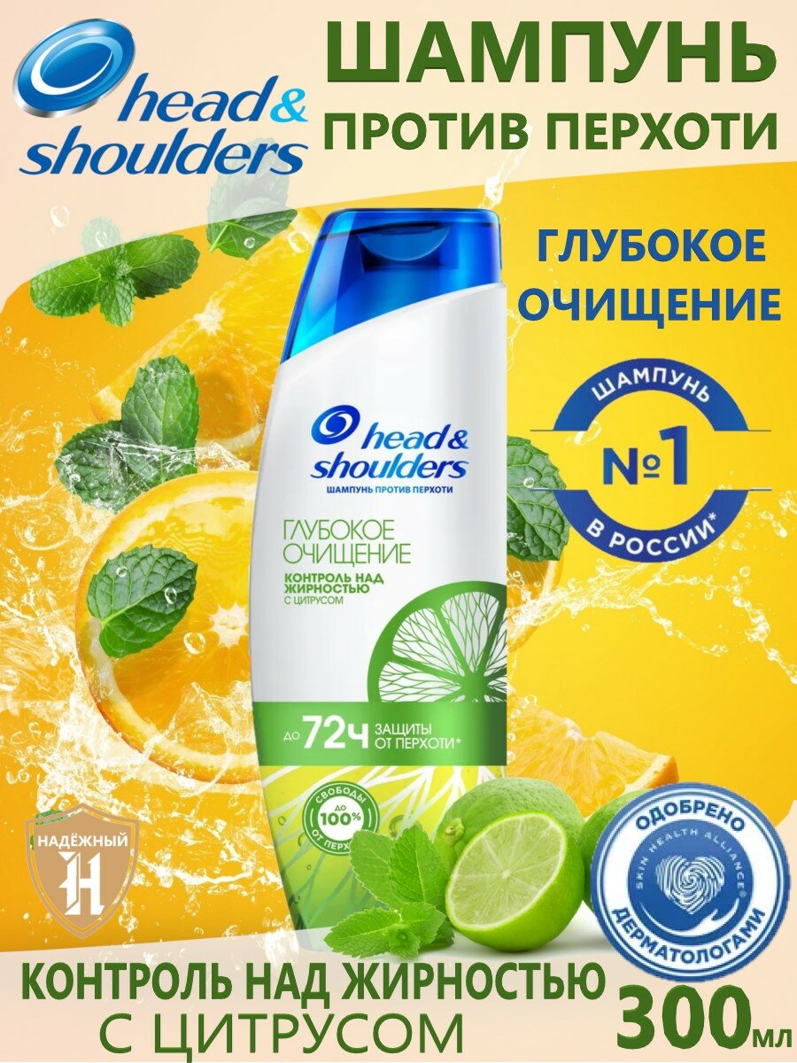 Прозрачный шампунь против перхоти Head & Shoulders «Глубокое очищение» с инновационной технологией очищения пор кожи головы. Революционная формула обеспечивает защиту от перхоти до 72 часов*. Линейка «Контроль над жирностью» с цитрусом бережно очищает жирные волосы и кожу головы. Усовершенствованная формула протестирована дерматологами, pH сбалансирована и усилена антиоксидантами. Head & Shoulders — бренд шампуней № 1 в России**, который также заботится о планете: этот флакон Head & Shoulders пригоден для переработки (за исключением колпачка и этикетки).