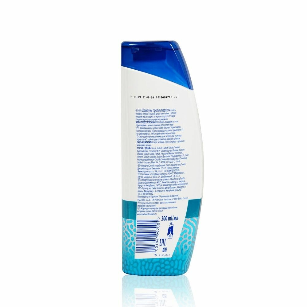 Прозрачный шампунь против перхоти Head & Shoulders «Глубокое очищение» с инновационной технологией очищения пор кожи головы. Революционная формула обеспечивает защиту от перхоти до 72 часов*. Линейка «Детокс кожи головы» с морскими минералами бережно очищает поры и освежает кожу головы. Усовершенствованная формула протестирована дерматологами, pH сбалансирована и усилена антиоксидантами. Head & Shoulders — бренд шампуней № 1 в России**, который также заботится о планете: этот флакон Head & Shoulders пригоден для переработки (за исключением колпачка и этикетки).
