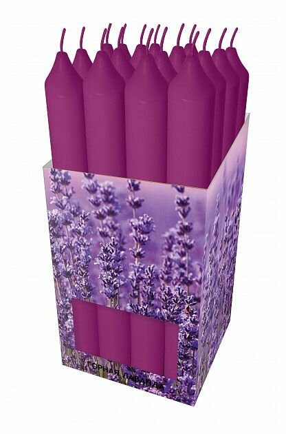 Ароматизированная свеча с ароматом лаванды изготовлена из парафина с добавлением красителей и ароматизаторов, не выделяющих вредные вещества при горении. Фитиль выполнен из хлопчатобумажной нити. Это не только надежный источник света, но и замечательное украшение для вашего праздничного стола и интерьера. Классическая свеча с тонким ароматом добавит романтики в ваш дом и создаст неповторимую атмосферу уюта и тепла, будь то торжество, романтический вечер или будничный день.