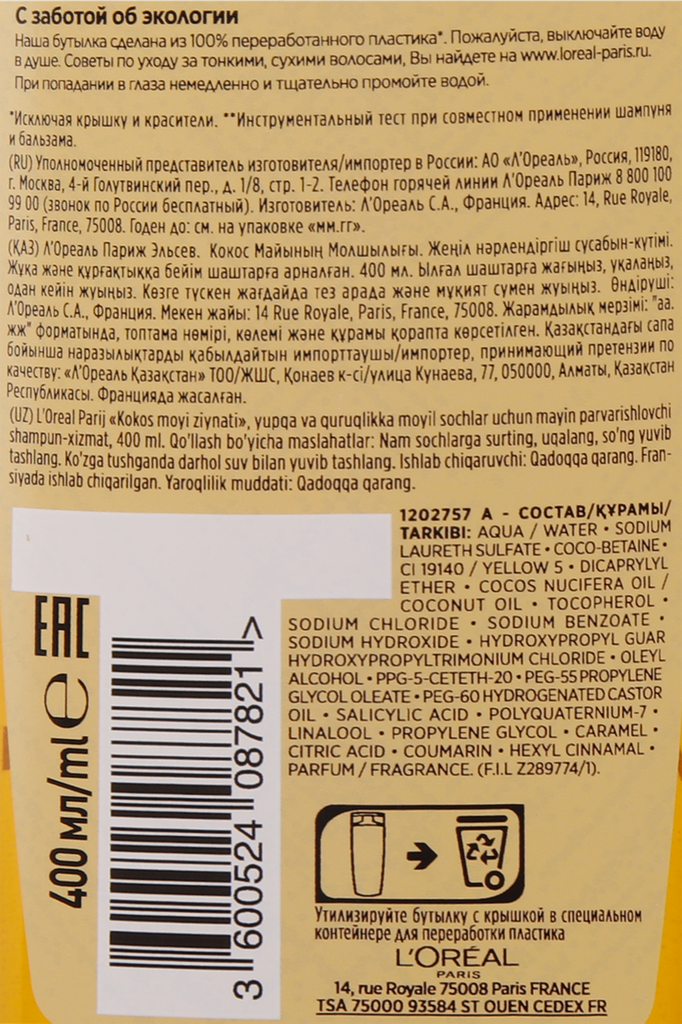 Сервис сравнения цен СкидкаГИД предлагает сравнить цены на товар «Шампунь для волос L'Oréal Paris Elseve Роскошь кокосового масла 400 мл L'Oreal Paris»