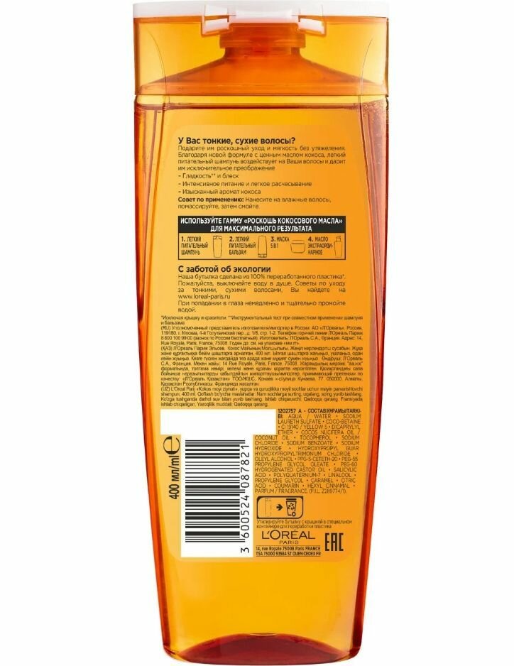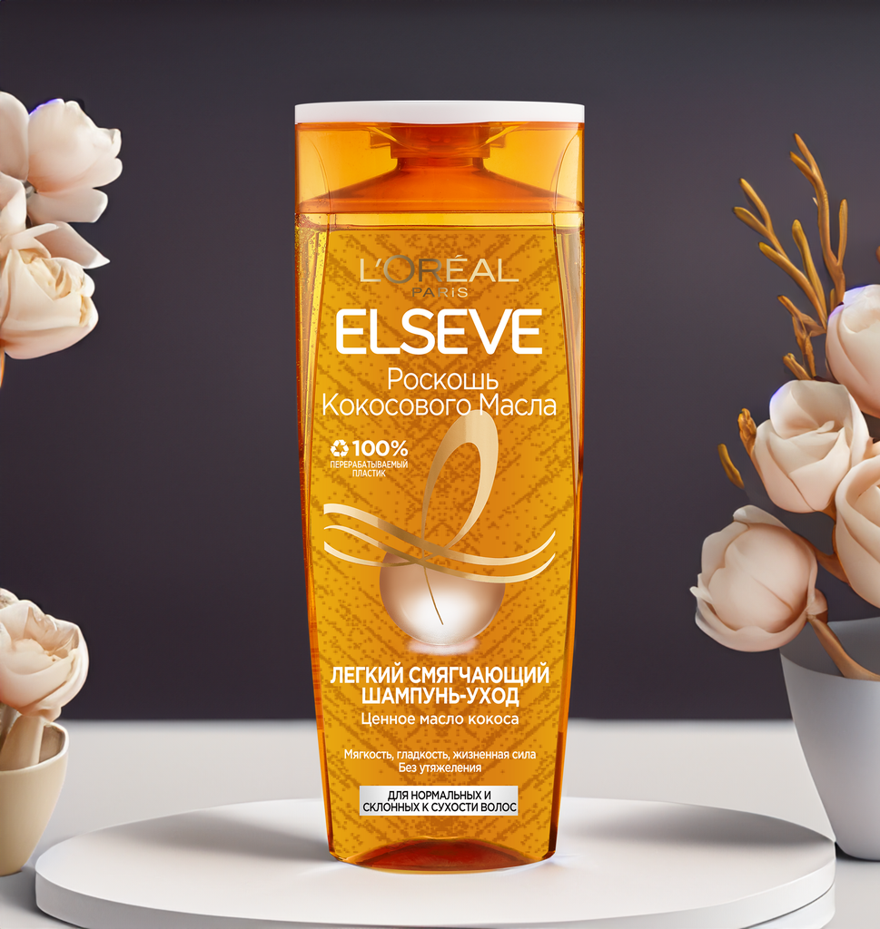 Для лучшего результата используйте бальзам-уход и маску 5 в 1 от Elseve Роскошь Кокосового Масла. Нанесите на влажные волосы, помассируйте, затем смойте.