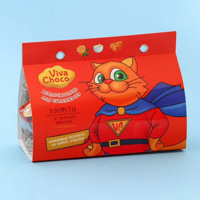 Коллекция конфет под девизом «Исключительно для супергероев!» отлично подойдёт самым сильным и мужественным в качестве комплимента. Нежный вкус Тоффи в молочном шоколаде и обертке в виде Кота. В каждой упаковке раскраска с оживающей реальностью.