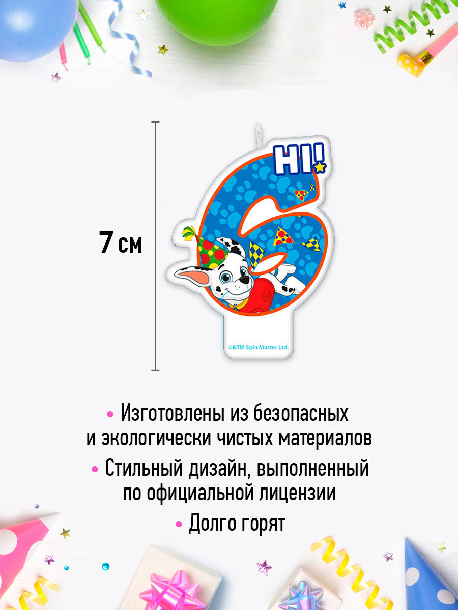 Свеча Nd play Щенячий патруль цифра 6 15х75 см
