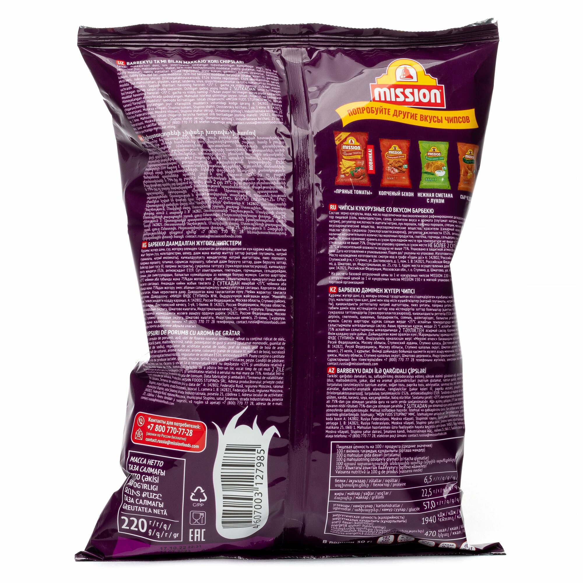 Неповторимый вкус барбекю в сочетании с хрустящими кукурузными чипсами создаст атмосферу праздника и пикника в любое время года. Кукурузные чипсы MISSION приготовлены исключительно из цельного кукурузного зерна, размолотого каменными жерновами.