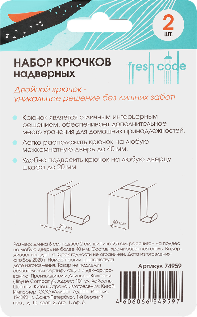 На сегодняшний день товар «Набор крючков на дверь Fresh Code2шт» можно купить с кешбеком в 3 магазинах: ГЛОБУС, Ашан, Яндекс.Маркет