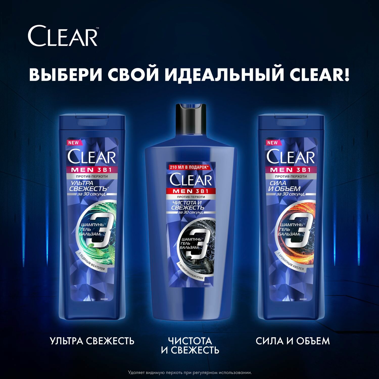 Шампунь бальзам гель для душа 3 в 1 для мужчин Clear «Свежесть» 610 мл