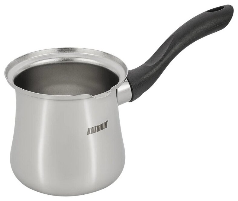 Турка выполнена из высококачественной стали марки 18/10. Идеальная обработка краев предметов и высокое качество полировки. Форма края носика открытая - препятствует образованию подтеков. Ручка из черного пластика, удобно ложиться в руку, не нагревается. Использовать на индукционной варочной панели можно только со специальным ферримагнитным диском-переходником.