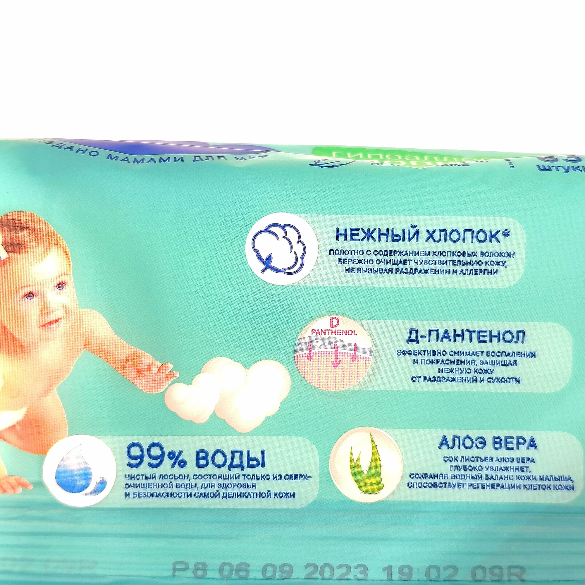 Мягкие и нежные салфетки созданы для очищения нежной кожи малышей. Они прекрасно очищают и увлажняют кожу. Не содержат спирта. Изготовлены из специального нетканого ультрамягкого материала на основе хлопка. Пропитанные детским лосьоном, содержащим натуральные растительные компоненты, они обладают приятным, не резким ароматом, бережно очищают нежную детскую кожу.
