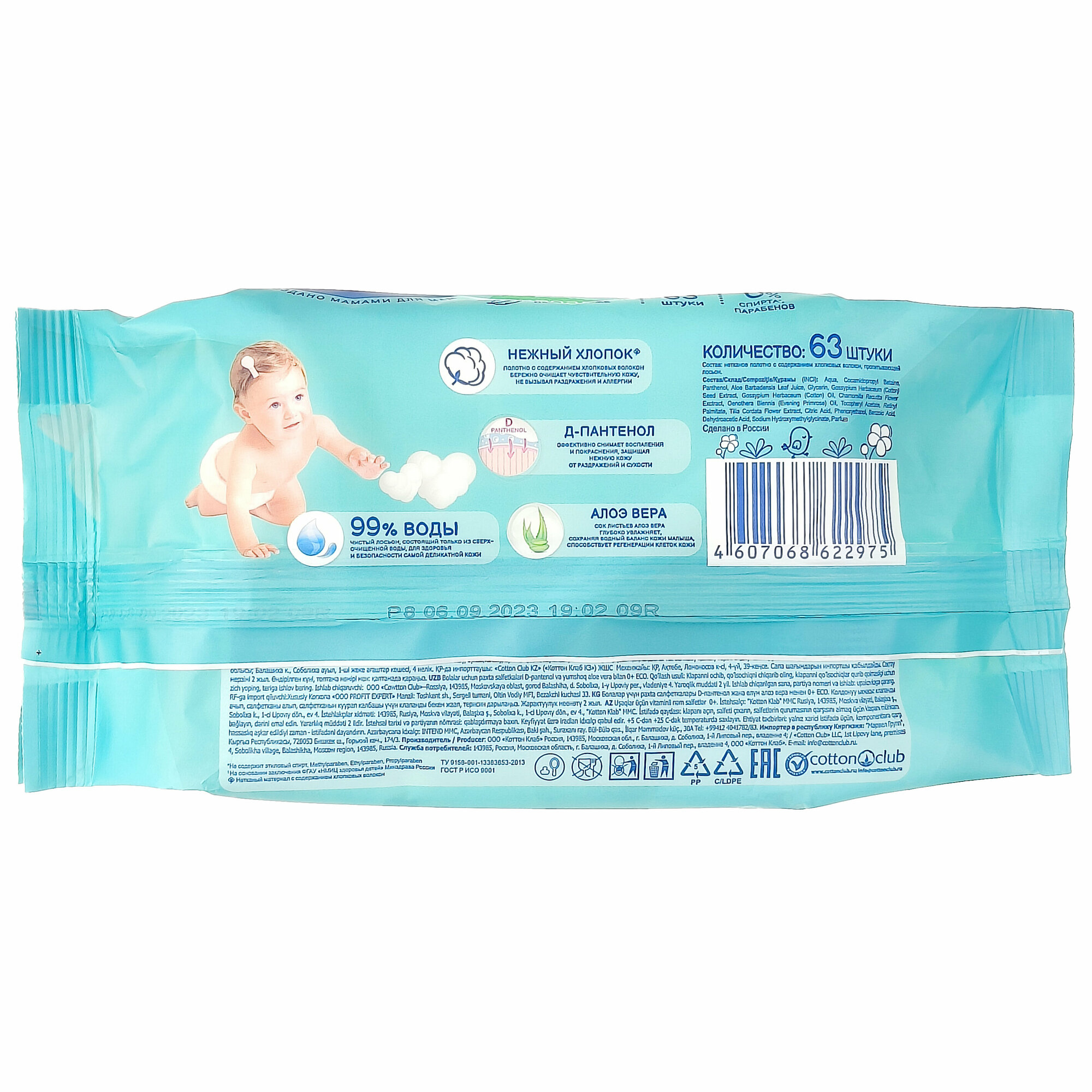 - Влажные салфетки Cotton Club Солнце и Луна для детей 63 шт Отзывы