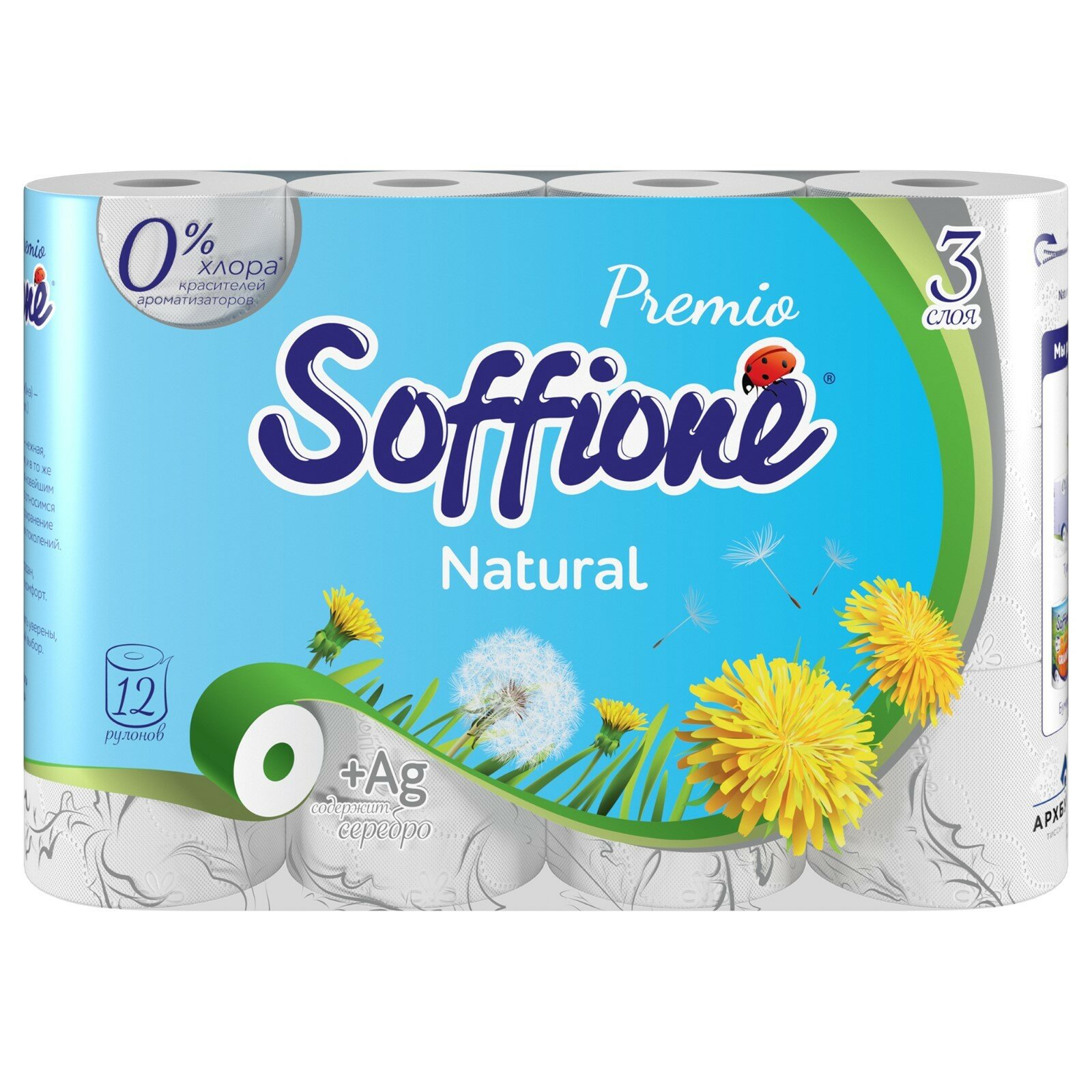 Туалетная бумага Soffione Premio Natural 3 слоя 12 рулонов
