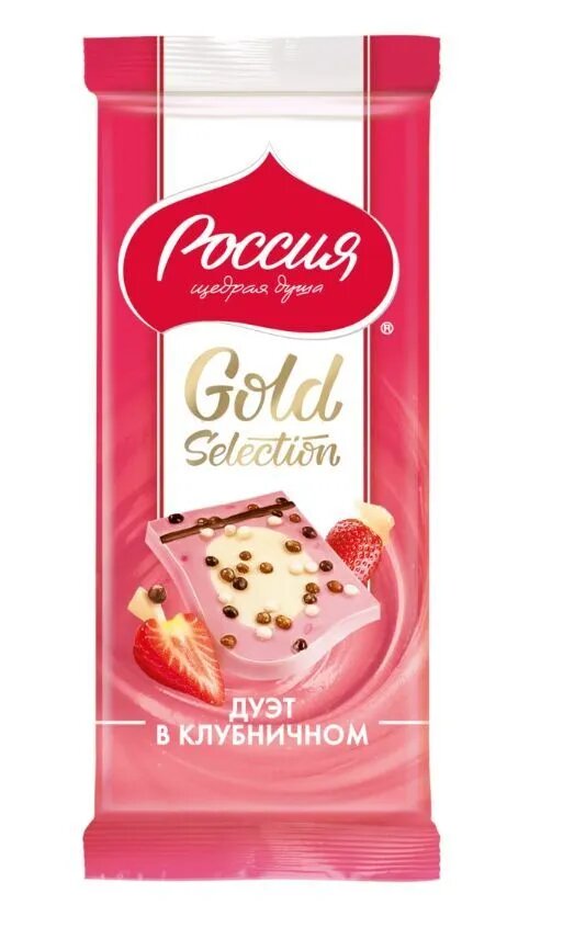 Шоколад «Россия - Щедрая душа!» Золотая марка белый с клубникой 85 г