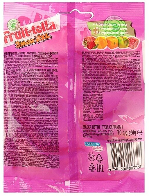Сочные жевательные конфеты и мармелад Fruit-tella дарят детям и взрослым всю радугу цветов и вкусов: от апельсина и яблока до черной смородины и клубники! Они изготовлены по уникальной рецептуре с использованием только натуральных компонентов – фруктов, овощей и фруктовых соков!