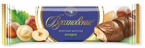 Гармоничный вкус сочетания нежнейшего молочного шоколада с тающей кремовой начинкой и кусочками обжаренного фундука.