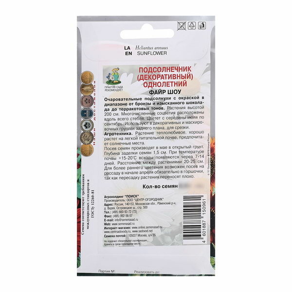 Семена Подсолнечник «Поиск» Файр шоу 05 г NO BRAND