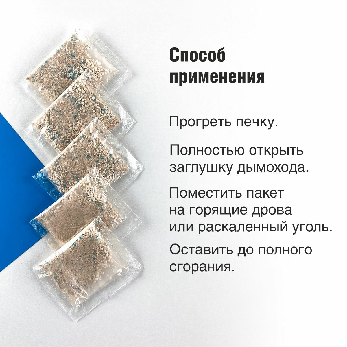 | Способ применения | Прогреть печку. Открыть заглушку дымохода. поместить пакет на горящие дрова или угли. Оставить до полного сгорания. |