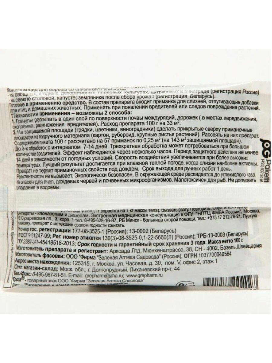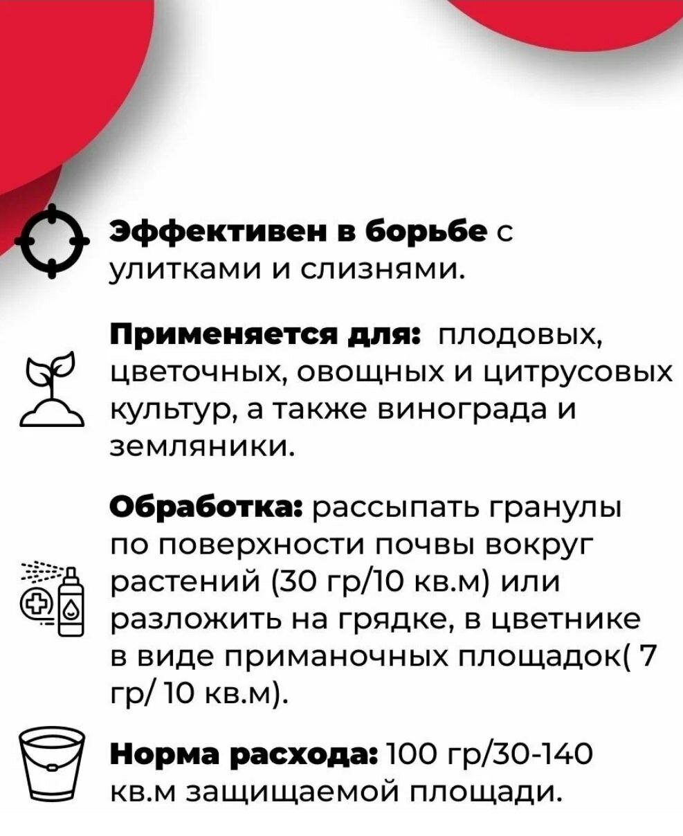 Препарат - Швейцария. Против слизней и улиток. Более 100 лет мирового применения для борьбы со слизнями. Прекрасно работает во влажных условиях и под дождем разрешено для экологического земледелия.