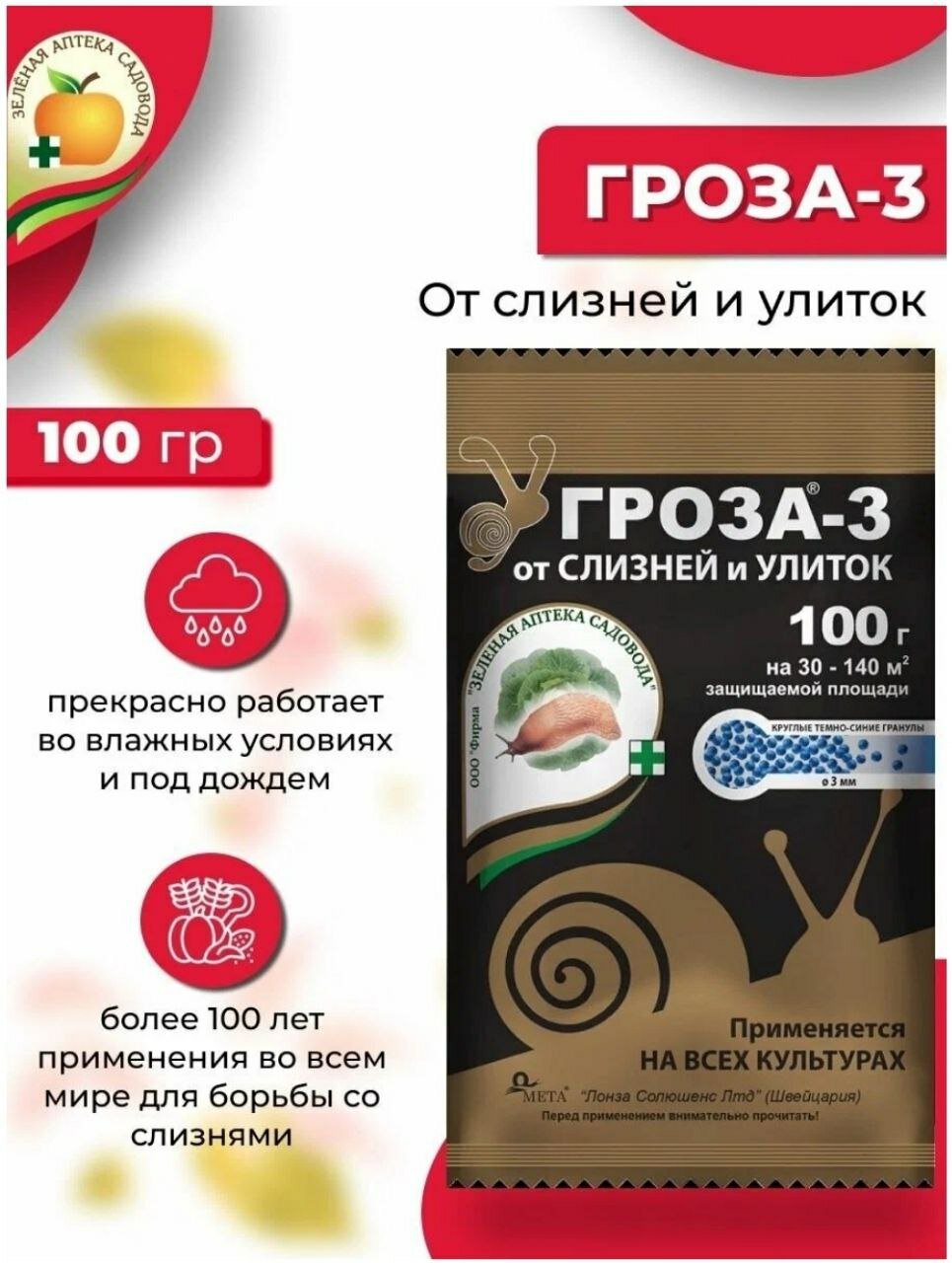Средство от улиток и слизней «Зеленая Аптека Садовода» Гроза-3 100 г